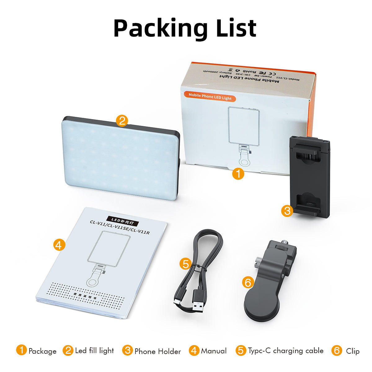 - 💎💎【Super Long Battery Life and Portable】 The light for phone has a built-in 2000mAh lithium battery, which has a long battery life and can last about 2 hours at maximum power. The design is small and compact, lightweight and can be carried in a purse or pocket without taking up space. It is a portable photography fill light..