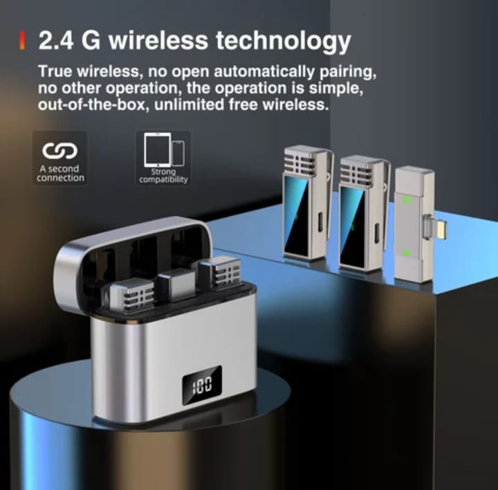 The microphone has a 110mAh battery capacity, which can work for up to 10 hours on a single charge, and the 600mAh charging case can provide 2.7 charges for the microphone.