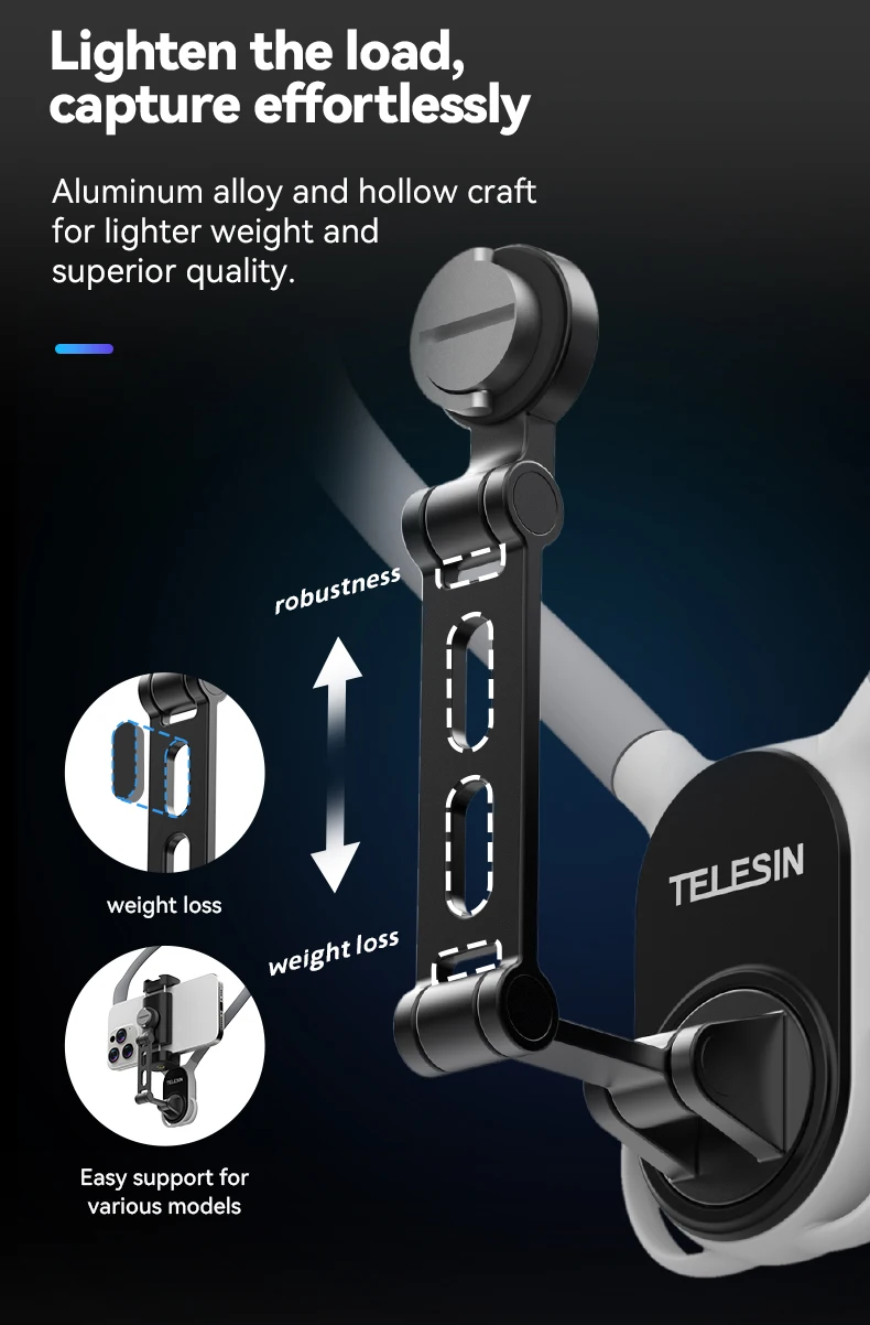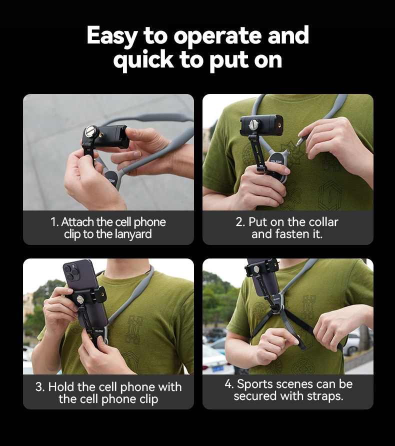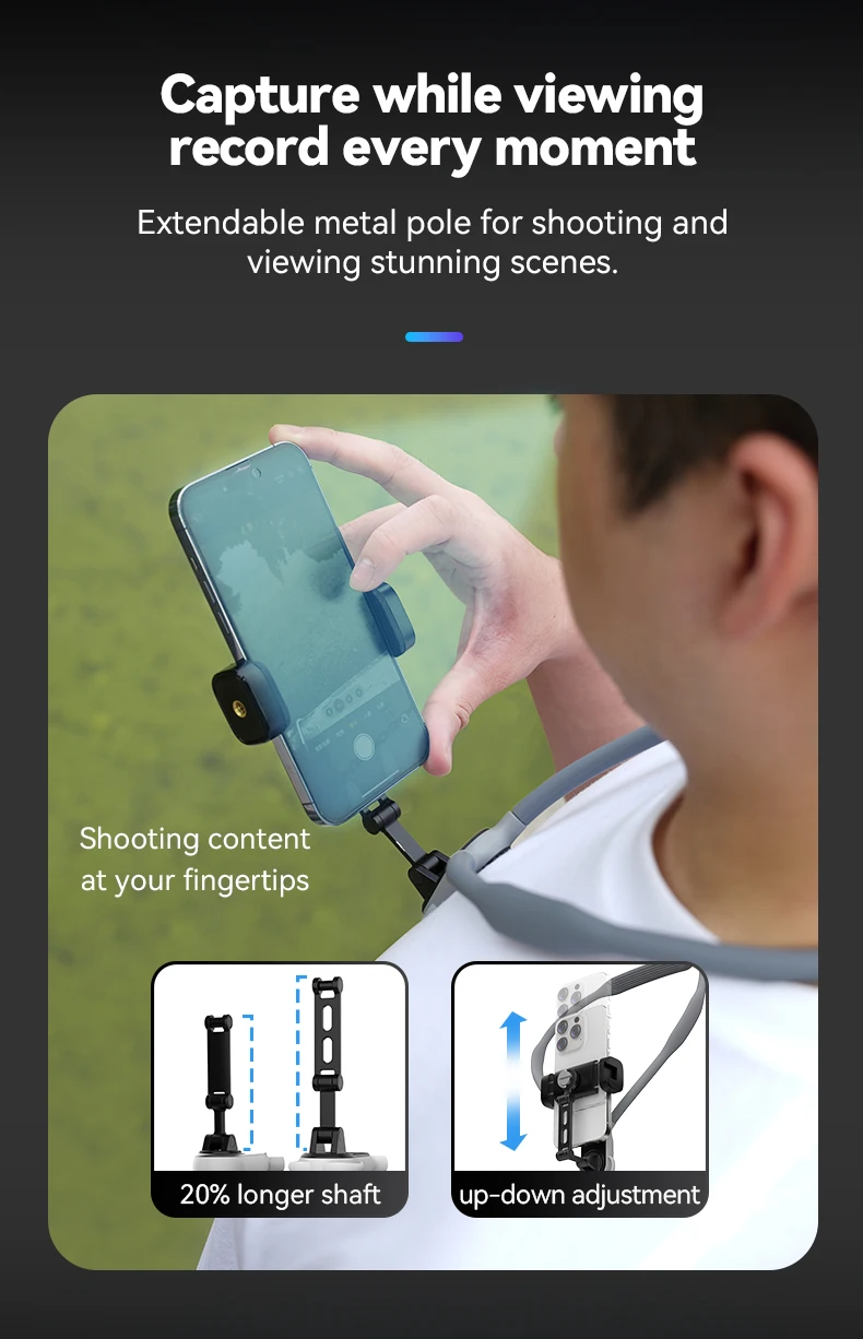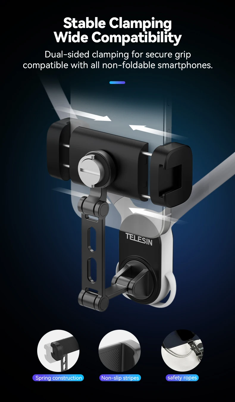 - Dual-sided clamping for a secure grip, compatible with all non-foldable smartphones